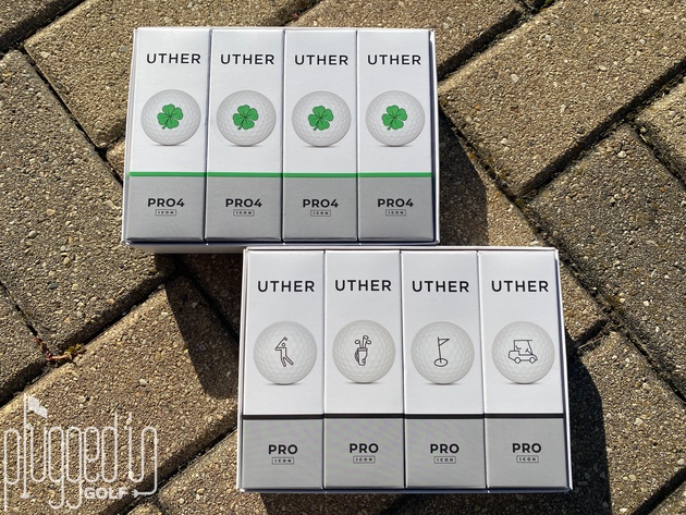 The Uther Pro and Pro4 golf balls are tour-quality golf balls with large icons for added style. Pro model has very soft feel. Pro4 has a firmer, Pro V1-type feel and 4-piece construction for the faster swingers.