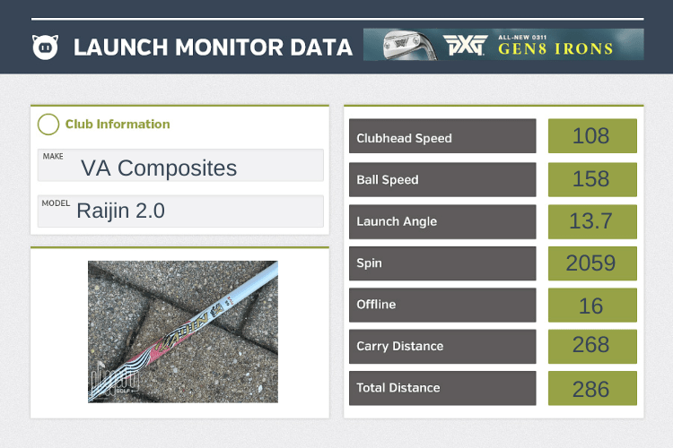 The VA Raijin 2.0 shaft has a smooth feel and a powerful kick.  Surprisingly good at containing the hook, but this shaft definitely favors a draw.  Mid-high launch and spin.