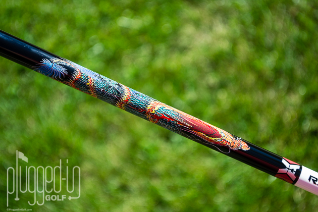 No one will question your flair for style with a VA Composites Raijin in your golf bag. Though half the shaft is plain white, you’re immediately drawn to the dragon graphics in the middle of the shaft. I’ve played plenty of loud and exciting looking shafts in my day, but nothing has ever received the comments or intrigue that the Raijin has in my driver. As a raging gear nerd, I enjoy the invitation to talk about this new shaft company when I receive these comments.