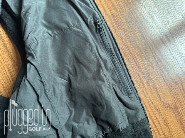 This vest also features loads of zippered pockets. In addition to the pockets on either hip, there’s a zippered exterior chest pocket and a zippered interior chest pocket (above).