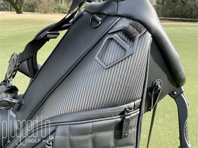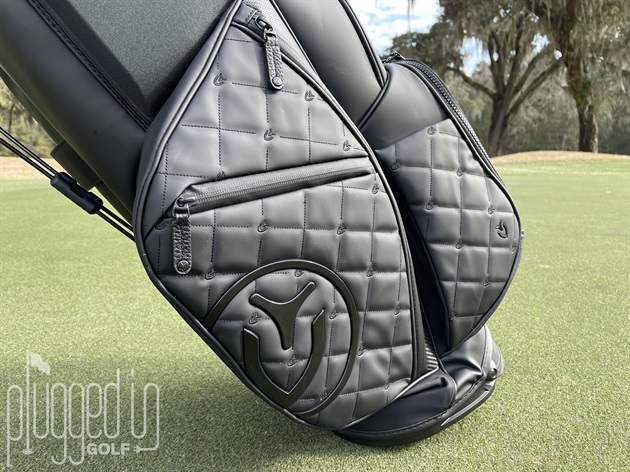 While Vessel golf bags are noted for their upscale looks, the Vessel Player III Carbon Black takes it to the next level. The aforementioned Carbitex panels provide a high tech visual component. The weave is reminiscent of the exposed carbon fiber found on many driver crowns. Additionally, the quilted elements are straight up luxurious looking. The black stitching and small Vessel logo pattern reflect precision.