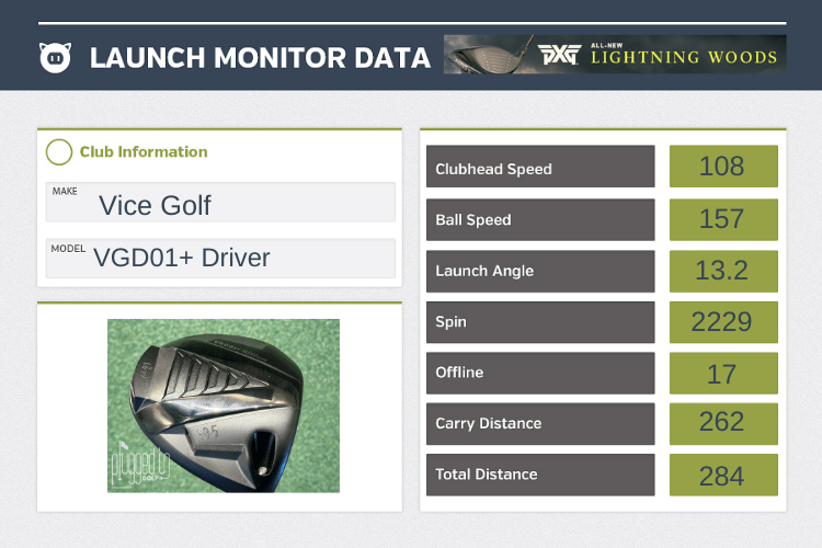 Since I don’t have a wind tunnel on hand to test the aerodynamics, I put the Vice Golf VGD01+ driver on a launch monitor to check out the claims of high launch and low spin.  For me, this driver scored a 50% – low spin yes, high launch no.  To add more context, I’d say that the spin is lower, not low.  This isn’t comparable to a low spin players driver like the PXG Lightning Tour [review HERE], but it is fairly low spin for a middle of the road driver.  For those that like comparing numbers, I tested a 10.5 degree driver here, and I typically play a 9.