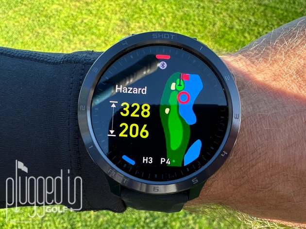Once you’re fully into golf mode, you don’t need touch the Voice Caddie T11 Pro if you don’t want to. Twisting your wrist turns on the display, and the watch automatically switches to the correct hole and view as you move around the course.