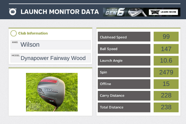 The Wilson Dynapower fairway wood is a solid performer but not a standout. Good forgiveness. Excellent impact sound.