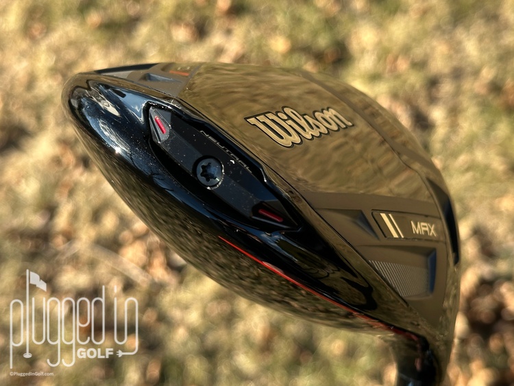 Turning to adjustability, the Wilson DYNAPWR Max driver has a unique weight adjustment to pair with its six-position hosel.  There is a single 19 gram weight at the rear which is heavily unbalanced.  With the heavier side toward the toe, it’s labeled “Neutral”; it’s labeled “Draw” when the heavier side is toward the heel.  This is a very minor adjustment, and I found the head to be draw biased no matter which way the weight faced.  The hosel, where you can add up to two degrees of loft or remove up to one, is a much more impactful adjustment.
