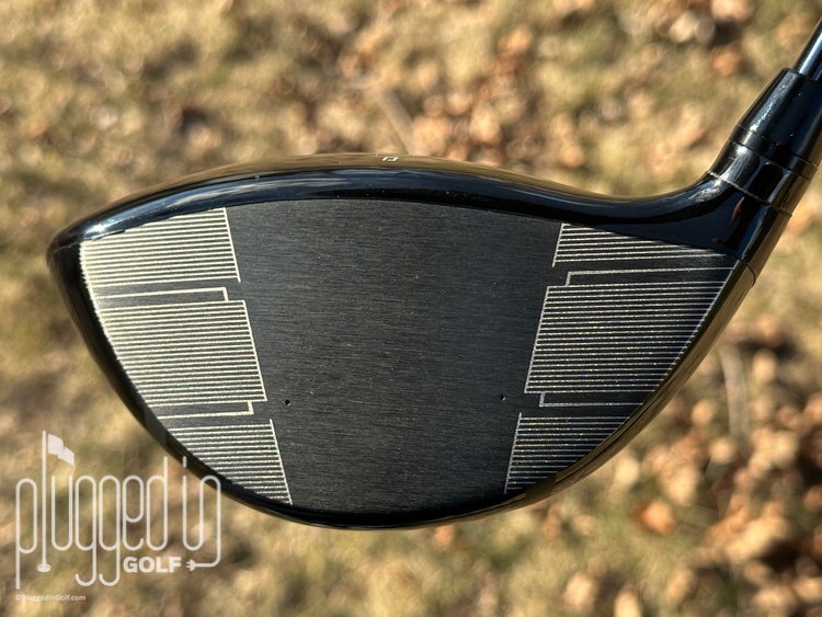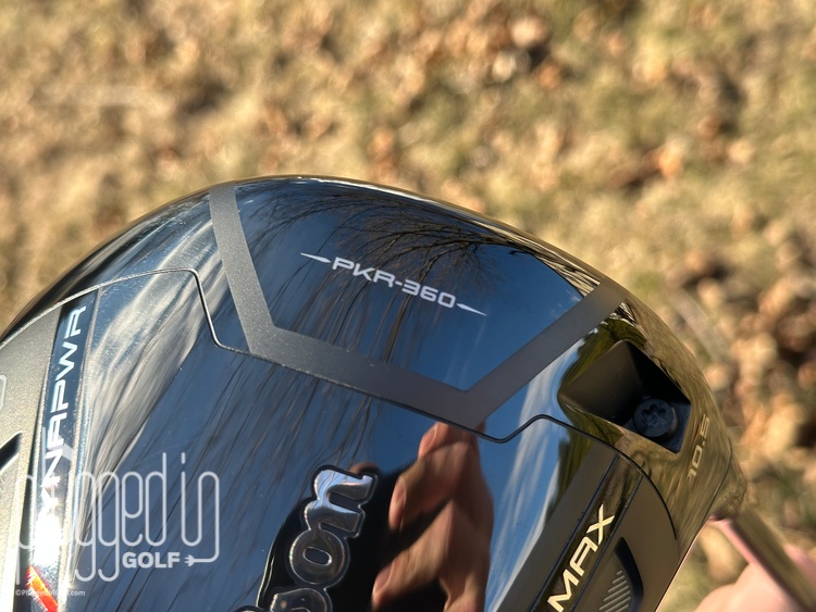 In the bag, the Wilson DYNAPWR Max driver has the same branding and graphics as its two brothers, but the sole is mostly gloss black, not carbon fiber.  While I like the carbon fiber look, the Max offers a calmer, less busy aesthetic.  Additionally, there’s only one weight port, and it’s hidden on the trailing edge rather than being in view on the sole.
