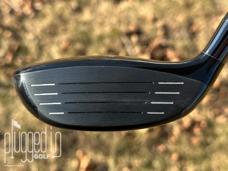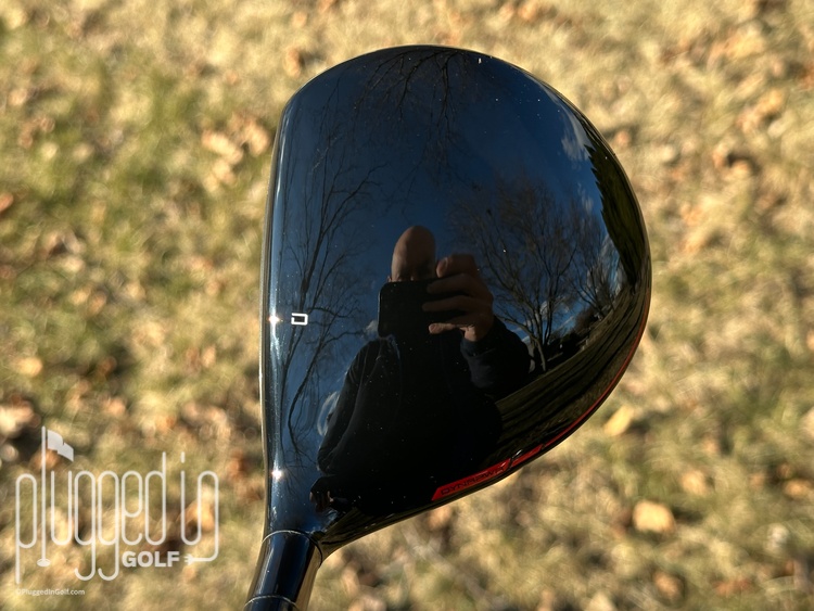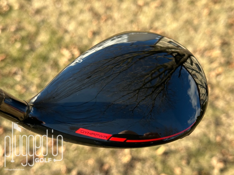 The crown is a solid panel of gloss black with a small, square alignment aid on the leading edge. In terms of size and shape, the DYNAPWR Max is much closer to the DYNAPWR Carbon fairway wood than I expected. Its face is a bit shorter, and it is longer from front to back, but the shape is similar. The biggest difference is that the DYNAPWR Max sits slightly shut in the neutral setting; the Carbon sits open.
