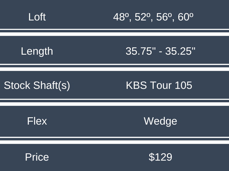 If the number of options in most wedge lines makes your head hurt, you’ll appreciate the simplicity of the Wilson Infinite wedges. This family of wedges includes four lofts (three for lefties) and no sole options. As you can see above, there are 12 degrees of bounce at every loft except the 48 degree which has 10. Simple.