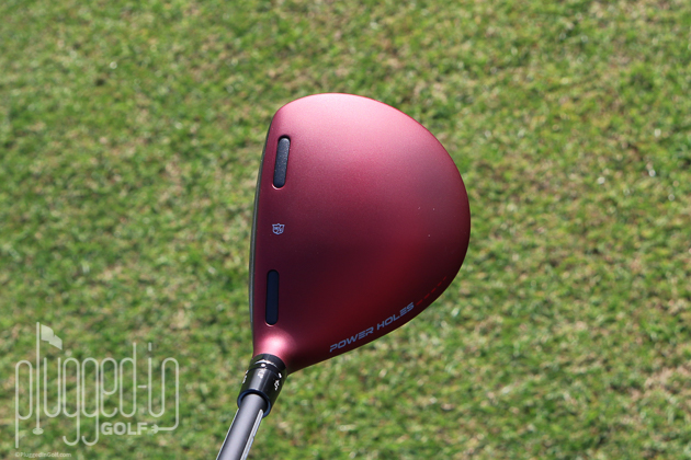 The C300 fairway wood looks like a miniature version of the C300 driver.  The most noticeable feature is the red crown, which is much darker and richer than it appears in photos.  Traditionalists will also wrinkle their brow at the Power Holes that frame the Wilson Staff shield.