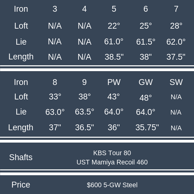 I bought the W/S D7 irons in March. After giving them a whole summer of testing I am completely satisfied with them. They are long and forgiving. The Recoil shafts are comfortable. I cannot think of any other club I would play overr these right now. My handicap dropped 2 full points in the last 6 months. I also have a set of Ping G710 irons with the same Recoil shafts that came in 2nd to the D7’s.