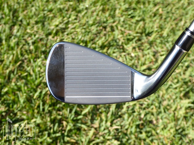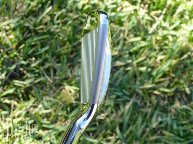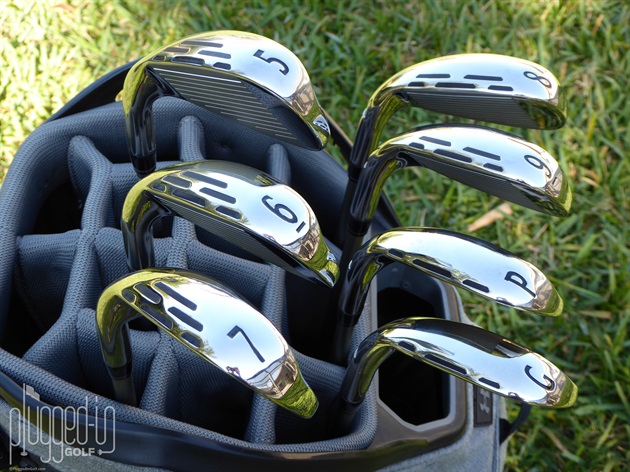 I’ll discuss the “why” later, but as far as looks, the D7 irons have 3 rows of Power Holes on the 5i-7i, 2 rows on the 8i and 9i, and a single row on the PW and GW. The wide sole is visible at address on the longer irons.