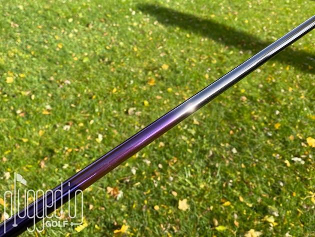 The majority of the Xcaliber Avalon has a purple base color that’s both unusual and very attractive. The finish is glossy and rich. Toward the tip, the shaft transitions to silver.