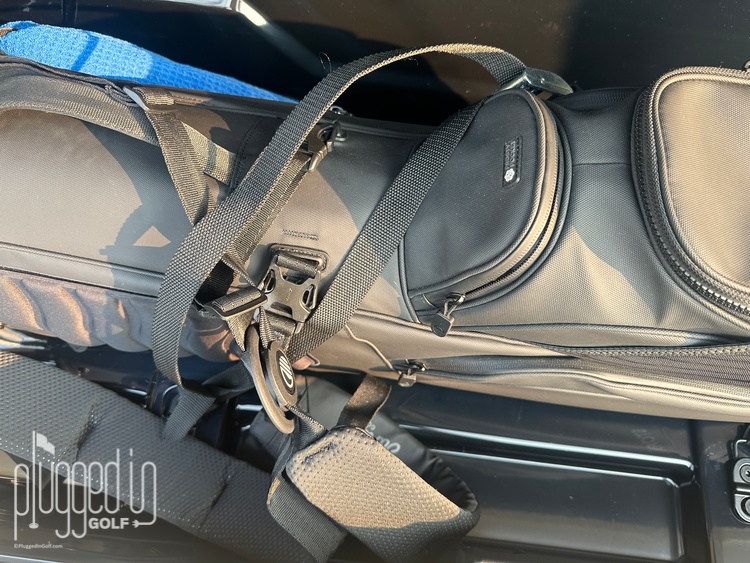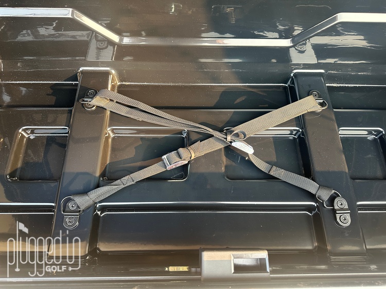 Another welcome feature is the pair of straps on the bottom of the Yakima EXO GearLocker. I use these when I’m toting just one golf bag to keep it from bouncing around.
